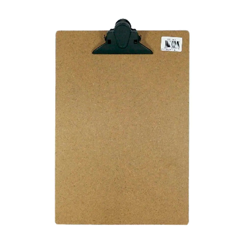 Prancheta em chapa de Eucatex com pegador de plástico resistente. Formato: 344mm x 230mm. Composição: HDF e resinas termoplásticas.