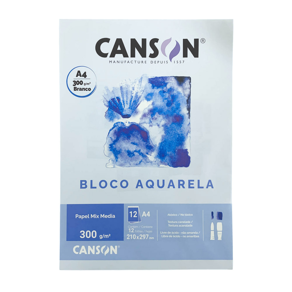 "O Bloco de desenho Aquarela é um papel artístico, dupla-face de alta gramatura e com dupla face de utilização; texturizada e lisa.