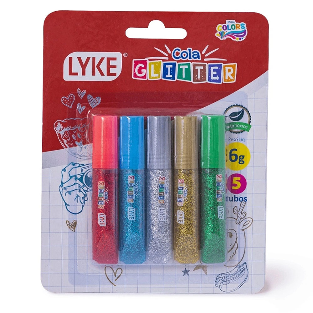 Cola Glitter com 5 cores, a cola glitter é indicada para trabalhos escolares e artesanais em geral. Ideal para colagens, relevos coloridos e decoração em geral. Embalagem: Blister com 5 unidades. Cores: Rosa, Azul, Prata, Dourado, Verde. Composição: resina de polivinil, água e glitter. ATENÇÃO: IMAGEM MERAMENTE ILUSTRATIVA. PODE OCORRER MUDANÇAS NO TOM DA COR PARA O PRODUTO REAL OU MUDANÇAS NA EMBALAGEM SEM AVISO PRÉVIO POR PARTE DO FORNECEDOR/FABRICANTE. - ATENÇÃO! NÃO RECOMENDÁVEL PARA CRIANÇAS MENORES DE 3 (TRÊS) ANOS POR CONTER PARTE(S) PEQUENA(S) QUE PODE(M) SER ENGOLIDA(S) OU ASPIRADA(S) E PONTA(S) AGUDA(S) FUNCIONAL(IS).