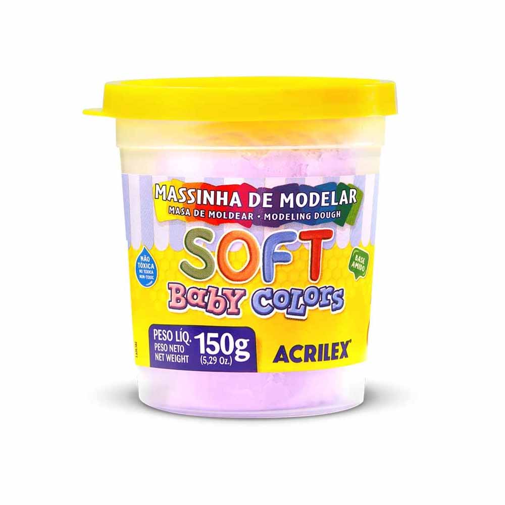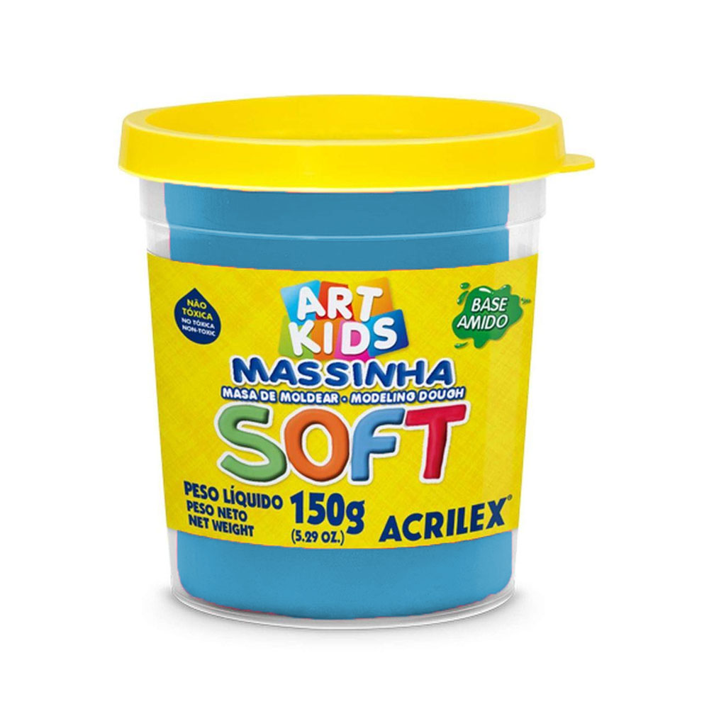 Massinha de Modelar Soft Acrilex. Para trabalhos de modelagem. Se quiser guardar a figura modelada, deixe-a secar em contato com o ar por 2 ou 3 dias. Após a secagem pinte com Guache. Massinha não tóxica. Base de amido. Embalagem: 150g de Massa de Modelar na cor azul.