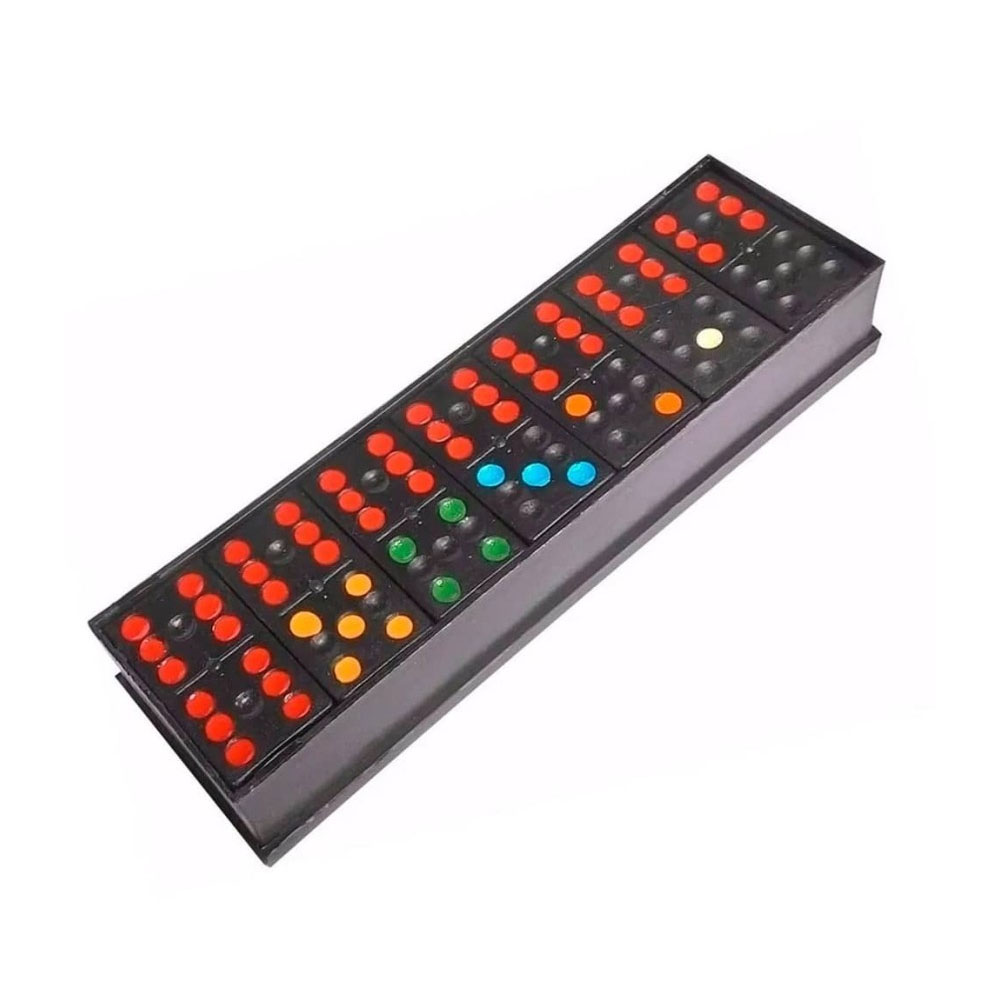 Contém 1 caixinha de plástico com 28 dominós Composição: Plástico Não recomendado para menores de 3 anos de idade
