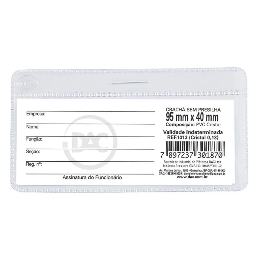 Crachá Transparente 9,5x4cm Horizontal 1 Unidade DAC
