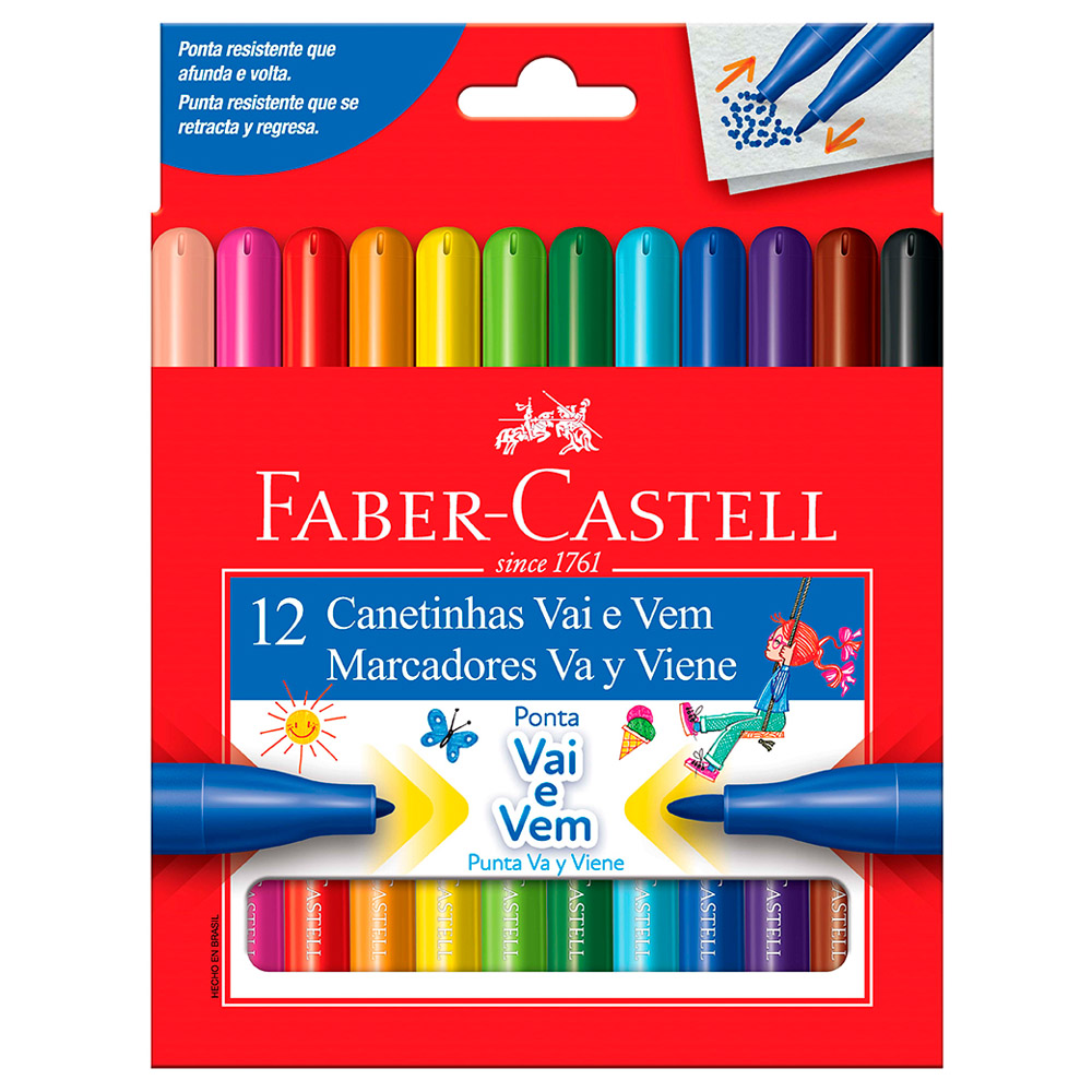 Caneta hidrográfica Faber Castell possui sistema exclusivo que protege a ponta contra impactos, garantindo maior durabilidade. Estimule a criatividade com cores vivas e tinta lavável.