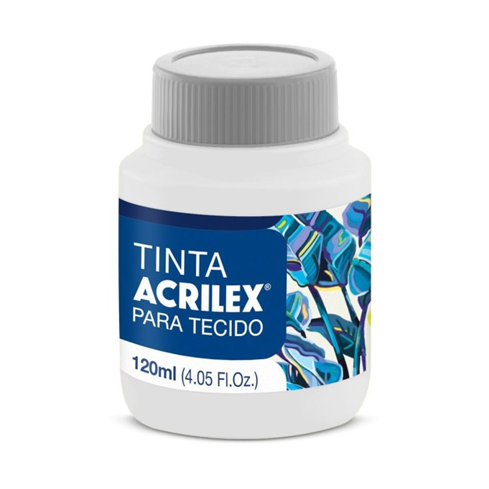 Tinta Para Tecido 250ml branco 519 contém 1 unidades Acrilex. Indicada para pintura artesanal em tecido, com um efeito fosco (8.45 Fl.Oz.) a aplicação deve ser feita com um pincel, esponja ou carimbo, em tecidos de algodão sem goma (não sintéticos). Após a pintura, aguarde 72 horas para lavagem. Para diluição, use o Diluente para Tinta Tecidos, indicado para diluir, retardar a secagem, fazer técnicas de matizados e sombreados, mantendo a resistência à lavagens.