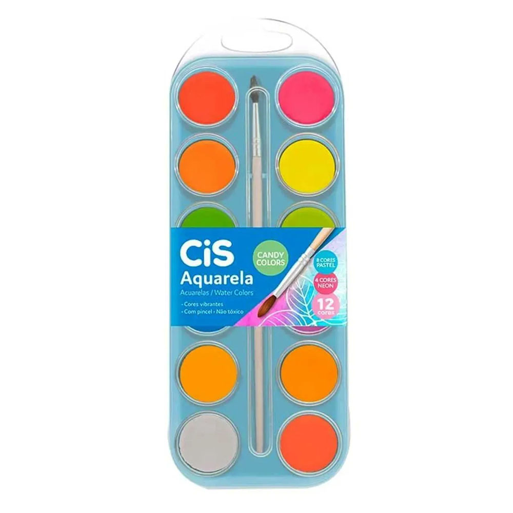 Aquarela pastilha 12cores c/pincel candy