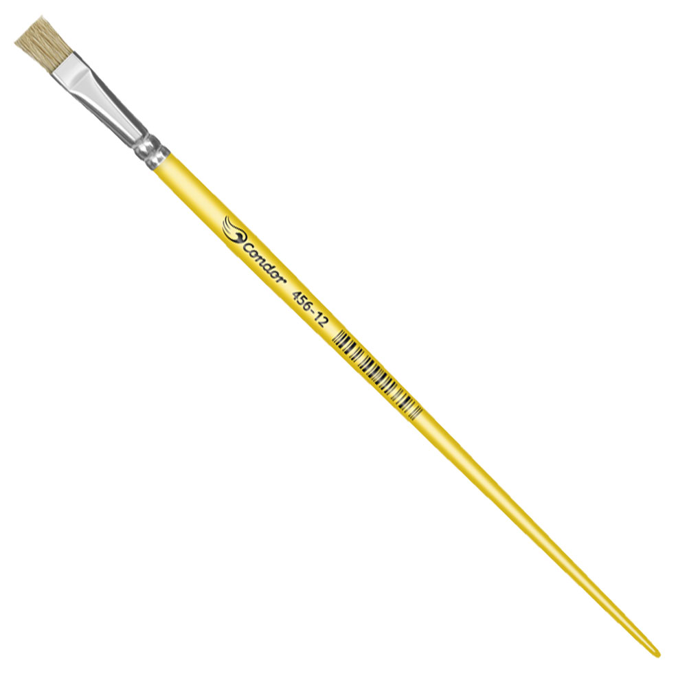 Pincel Chato Cerda Condor nº12. Pincel Chato com Cerda branca importada. Indicado para Cerâmica, artesanato, tecido, tela, escolar. Técnica: Acrílica, óleo e pintura com tintas diversas. Com virola de alumínio. ATENÇÃO: IMAGEM MERAMENTE ILUSTRATIVA. PODE OCORRER MUDANÇAS NO TOM DA COR PARA O PRODUTO REAL OU MUDANÇA NA EMBALAGEM SEM AVISO PRÉVIO POR PARTE DO FORNECEDOR/FABRICANTE.