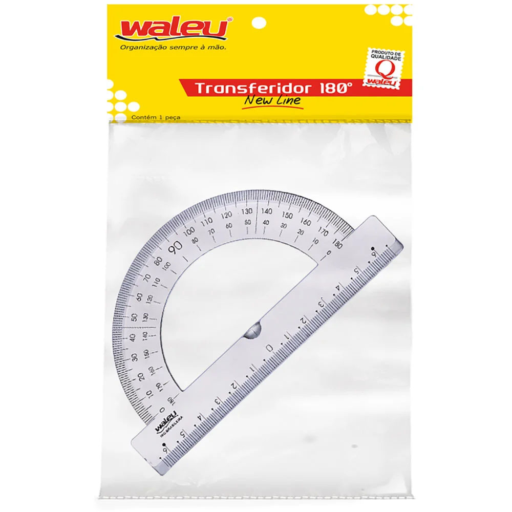 "Transferidor 180º- Waleu O Transferidor 180º chanfrado Waleu, é resistente, tem 1,6mm de espessura, feito em poliestireno e perfeito para medições e realização de trabalhos escolares. Cor: Transparente Tamanho: 8 X 14cm Marca: Waleu ATENÇÃO: IMAGEM MERAMENTE ILUSTRATIVA, FABRICANTE PODE ALTERAR EMBALAGEM SEM AVISO PRÉVIO "