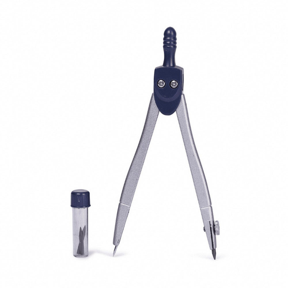 Compasso metálico LYKE, com refil de grafite. Corpo metálico, preciso e resistente, ideal para ser usado em ambiente escolar.