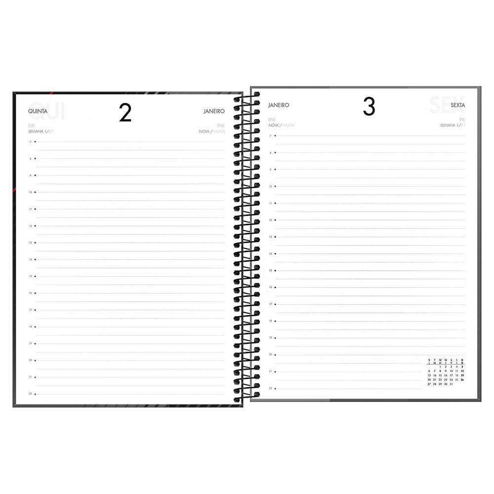 A Agenda Executiva Espiral Diária 20 x 27,5 cm Spot 2025 é ideal para organização do dia a dia. O produto, com visão de 1 dia por página, possui capa dura, acabamento espiral e bolsa plástica.