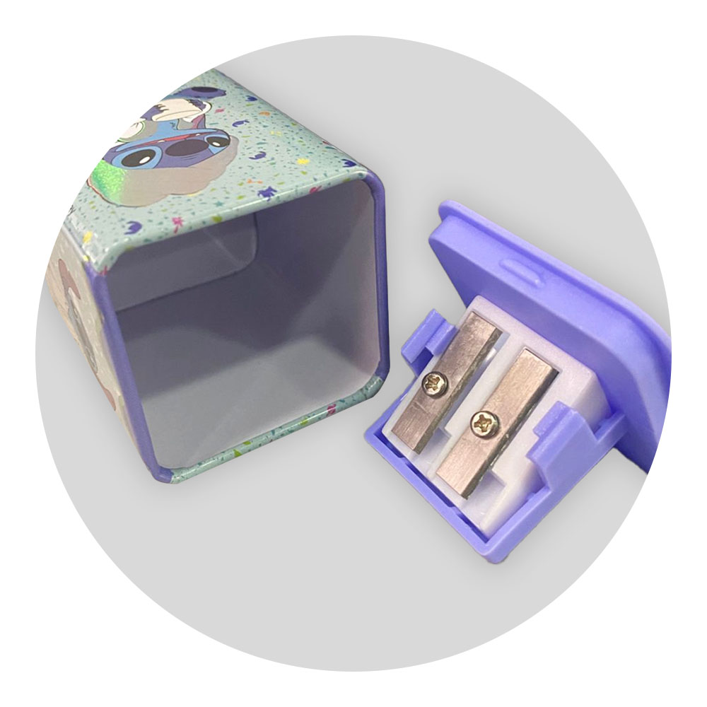 O Apontador com Depósito Metálico Quadrado Stitch da Molin é a escolha ideal para fãs do personagem da Disney. Com um design robusto e funcional, é perfeito para apontar tanto lápis comuns quanto jumbo. O apontador une praticidade e estilo em um único produto.