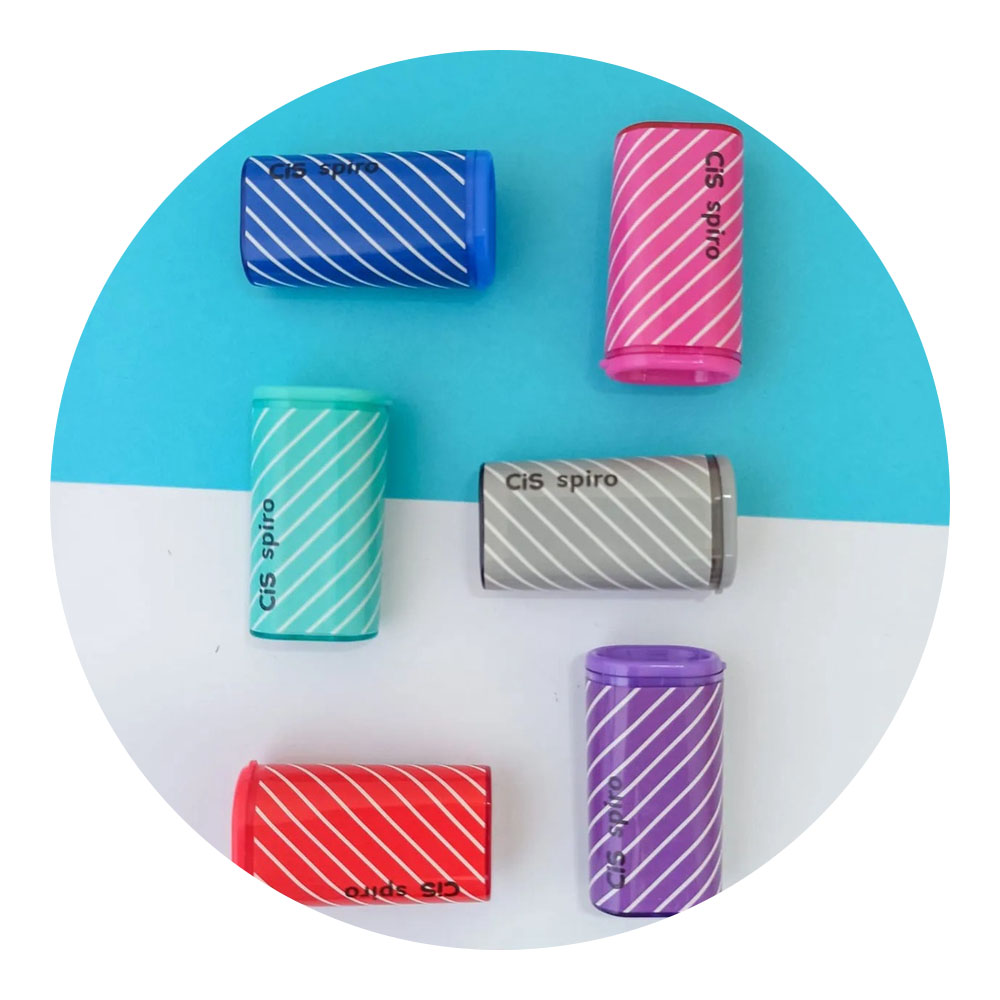 Apontador Sortidos Cis Spiro 1 furo, feito com material de resina termoplástica com lâmina em metal, possui depósito para guardar os resíduos dos lápis, com um tamanho ideal, que não ocupa muito espaço.
