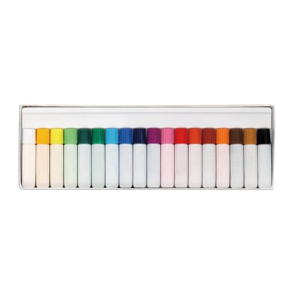 Tinta Aquarela Base D’Água com 18 Cores da Pentel. Contém 18 tubos de 6 ml cada, que produzem uma sensação muito agradável ao pintar! Fácil de mesclar as cores, possibilitando nuances coloridas e brilhantes e novos matizes!
