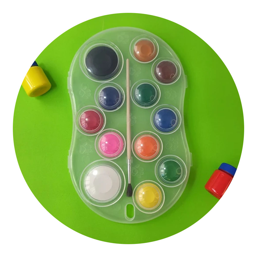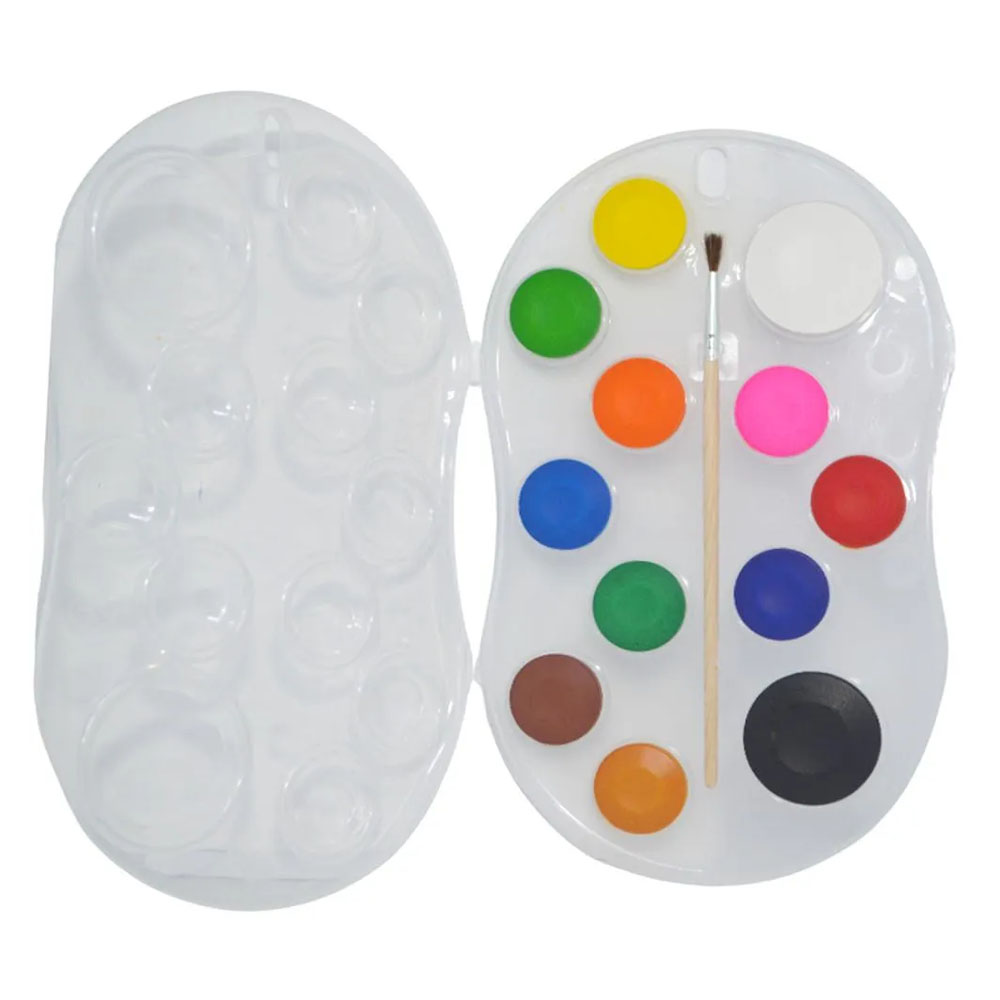 Contém 1 Pastilha com 12 Cores e 1 Pincel.