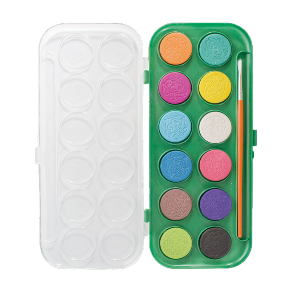 Descrição Aquarela 12 Cores em Pastilha + Pincel – Leo e Leo Lavável. Acompanha pincel. Solúvel em água. Atóxico. Pastilhas com 28mm de diâmetro e 3mm de altura. COMPOSIÇÃO: Resina termoplástica, tinta, carbonato de cálcio e goma de pêssego.