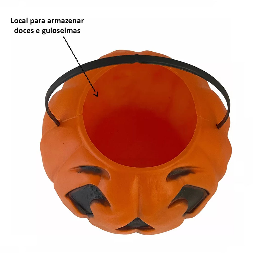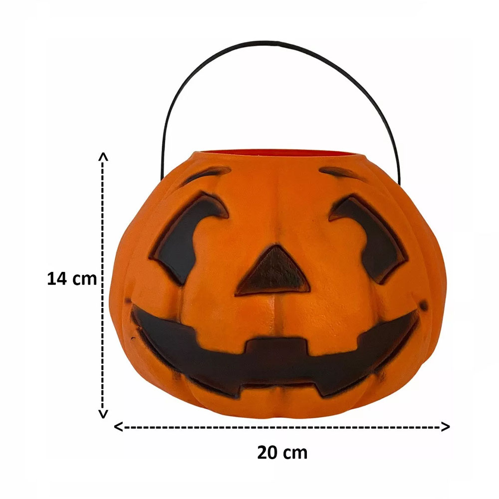 Balde de abóbora assustador perfeito para carregar suas guloseimas durante a noite aterrorizante do Halloween! As bruxas estão a solta Muahahahah!