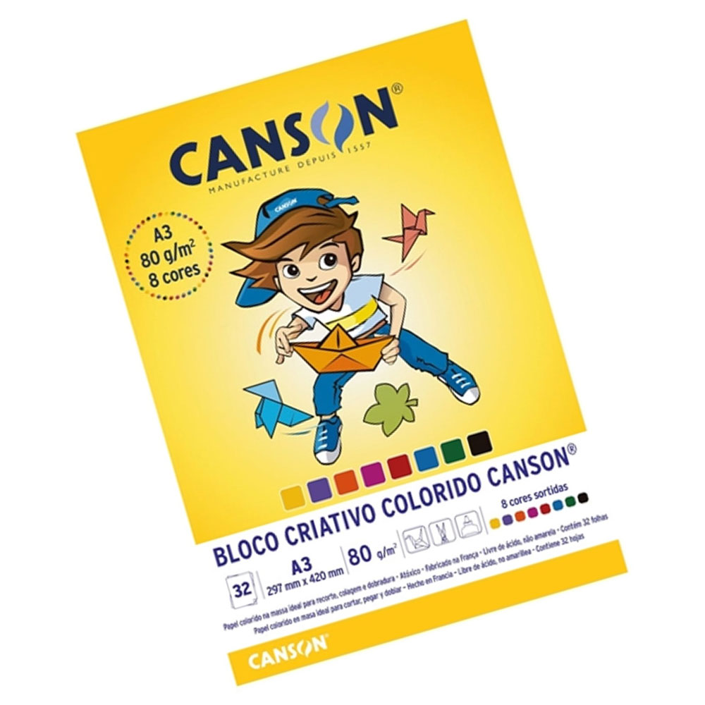 O Bloco Criativo Canson tem 32 folhas de 8 cores sortidas. Os papéis coloridos possuem tons fortes e vibrantes e são coloridos na massa por isso, não deixam vincos brancos, são mais resistentes ao desbotamento. São perfeitos tanto para Artesanato quanto para atividades escolares como dobraduras, origamis e recortes & colagens.