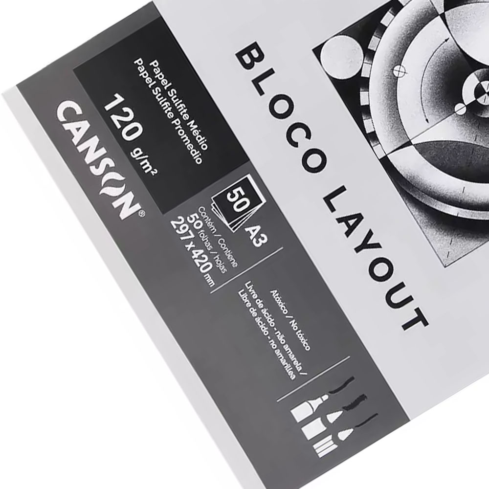 O Bloco Layout Canson® possui um papel Sulfite liso e branco, de gramatura média 120 g/m2 para gráficos, desenhos geométricos, projetos arquitetônicos ou de engenharia. Cores e texturas: Liso e branco recomendadas: desenhos técnicos a lápis, nanquim, canetas porosas, penas tubulares e marcadores a base de água. Obs: imagem ilustrativa, embalagem e formato das peças podem variar sem aviso prévio de acordo com fabricante. Cores podem variar conforme produção do fabricante.As cores podem variar de acordo com seu monitor.