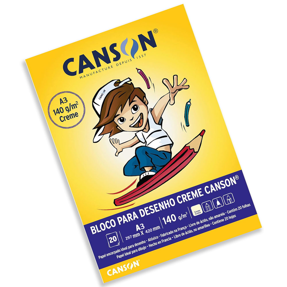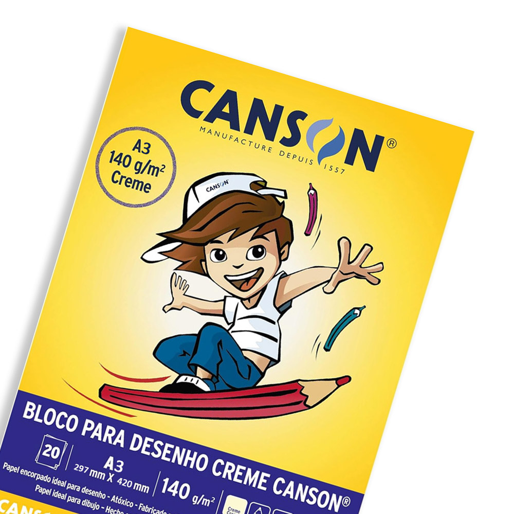 O Bloco Escolar Desenho Branco é o verdadeiro papel Canson, utilizado nas aulas de Educação Artística e Pintura para crianças em fase de aprendizagem.