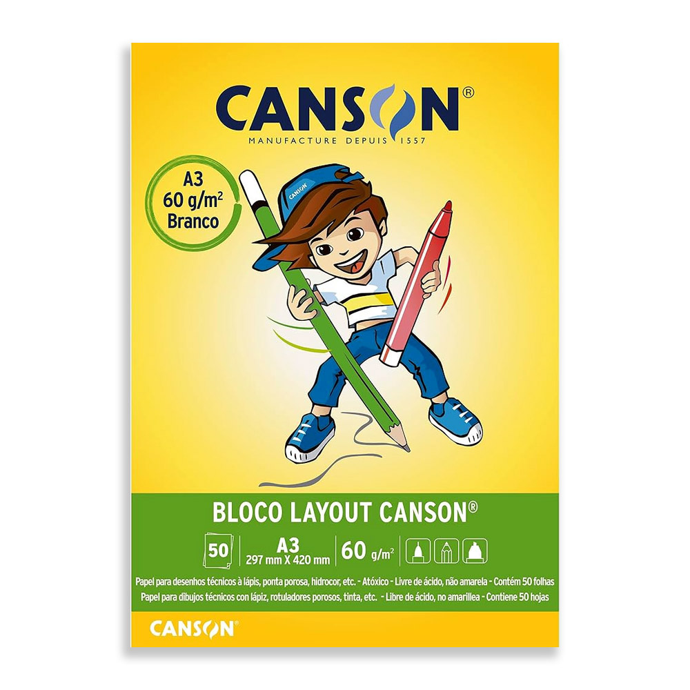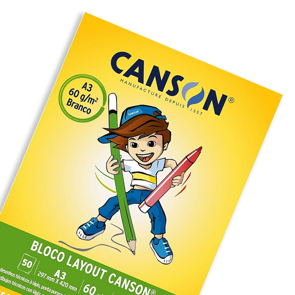 O bloco layout Canson é um papel sulfite branco mais resistente do que os papéis convencionais, desta forma é ideal para o ambiente escolar.