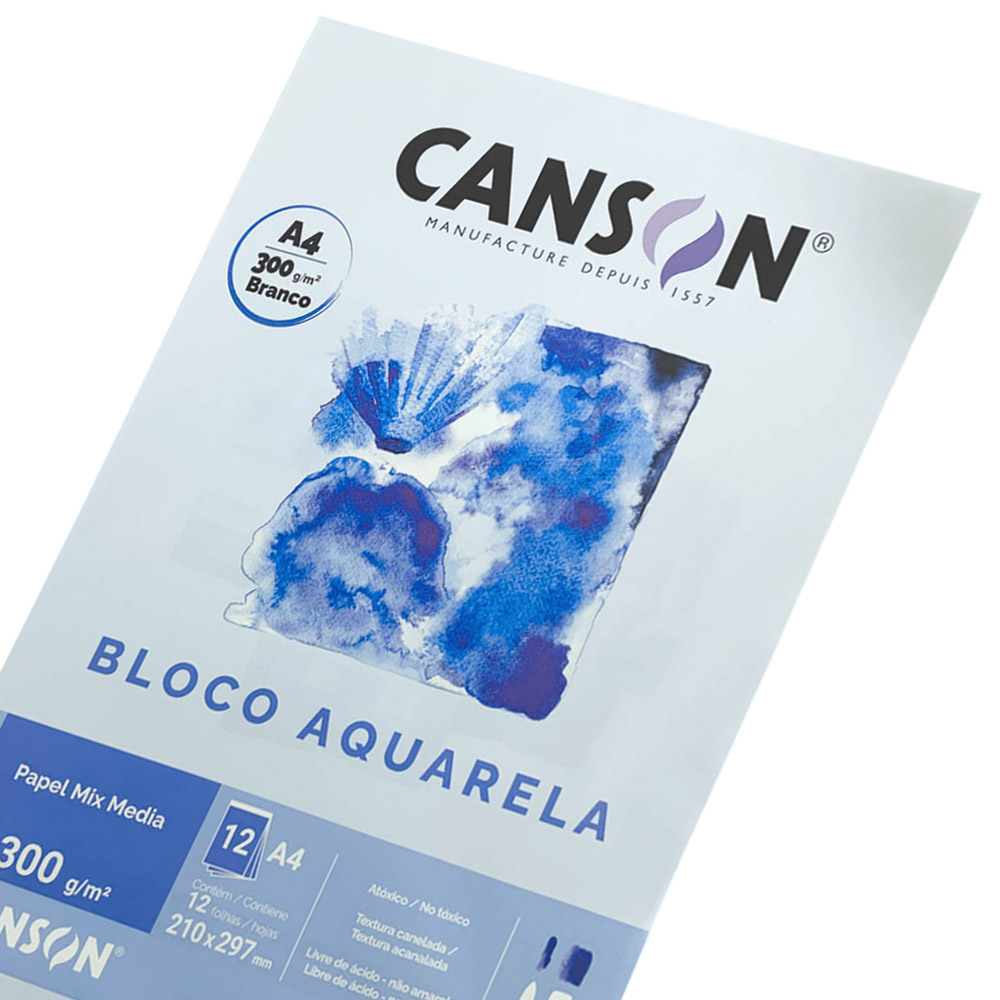 “O Bloco de desenho Aquarela é um papel artístico, dupla-face de alta gramatura e com dupla face de utilização; texturizada e lisa.