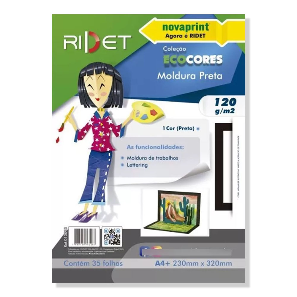Bloco Criativo Moldura A4 1 Cor (Preto) 35 Folhas 120gr 230X 320mm Ecocores RIDET