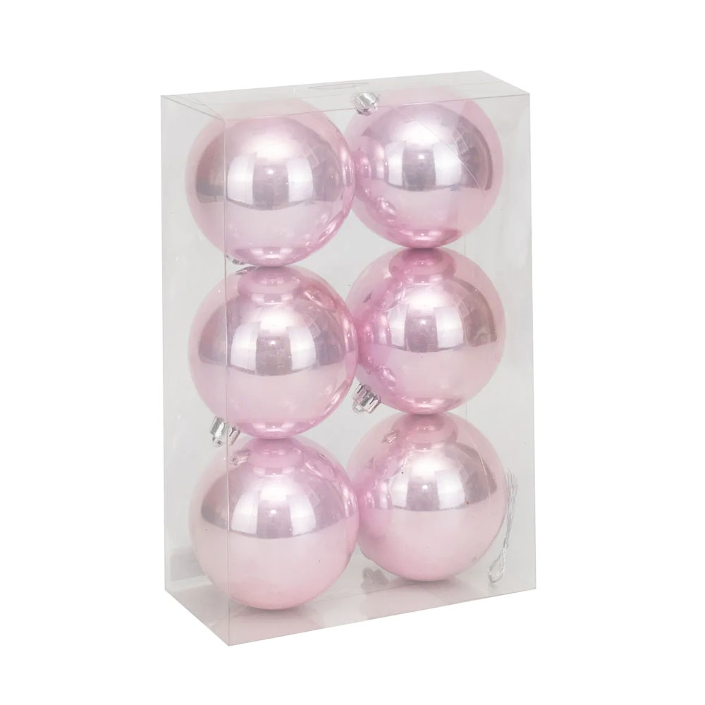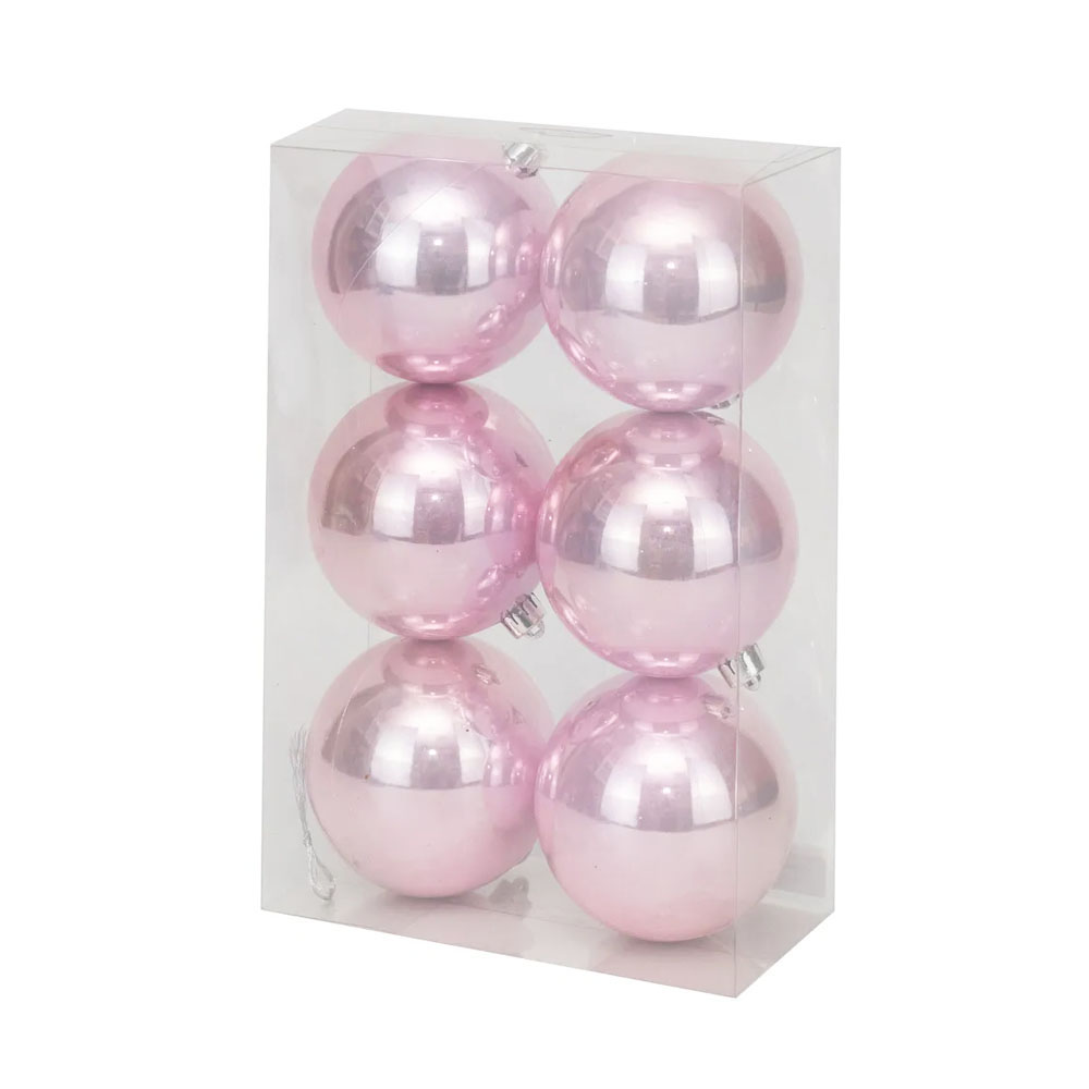 Kit Bola de Natal 8cm Rosa Perolado Brilhante 6und Cromus