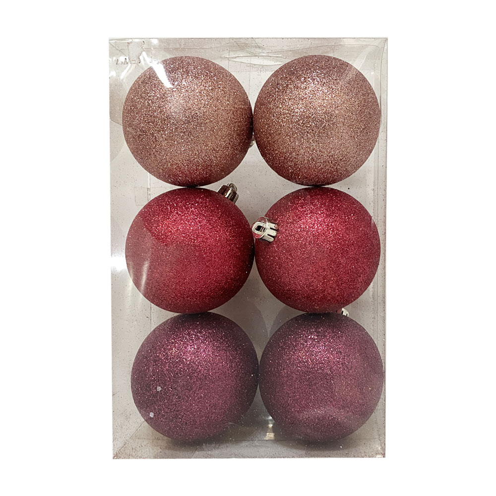 Kit Bolas de Natal 8cm Tons de Rosa Glitter c/ 6und Cromus