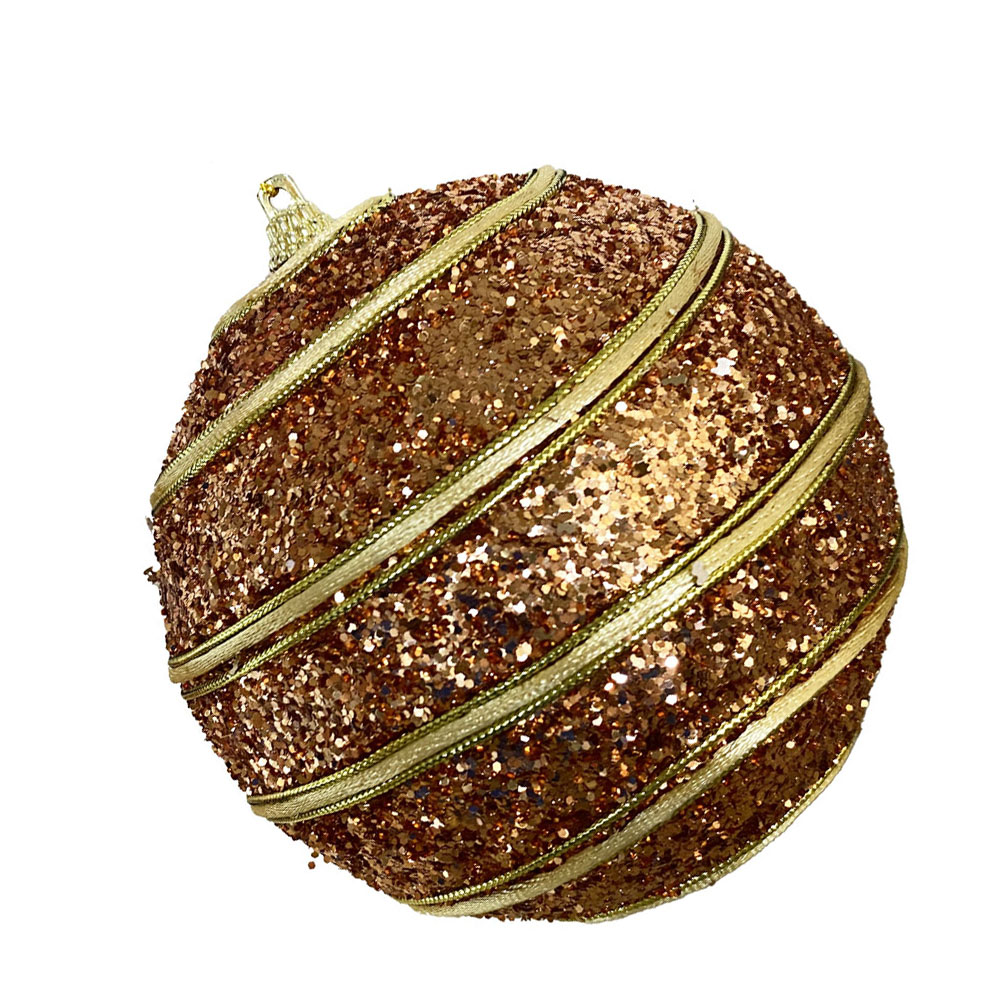 Bola de Natal 12cm Rose Glitter c/ Listras Douradas 1und Multiart