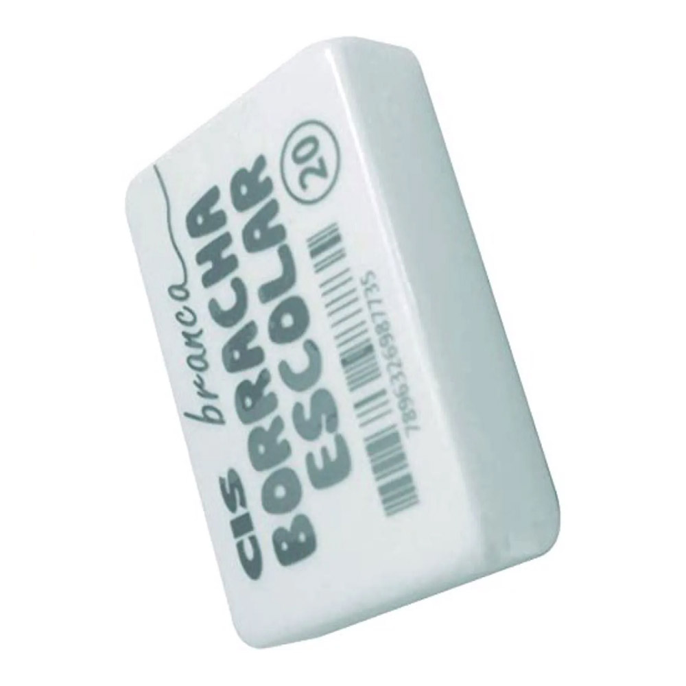Borracha Escolar Branca 20 Cis 01 unidade Borracha tradicional, indicada para uso escolar e técnico: macia e fácil de usar. Para lápis grafite e lapiseira
