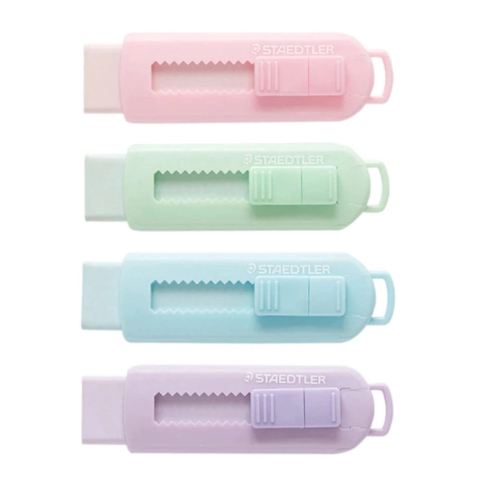 Incríveis borrachas estiletes, trazem muito estilo e precisão na hora de apagar seus erros, seus tons pasteis trazem uma sensação de paz e calmaria.