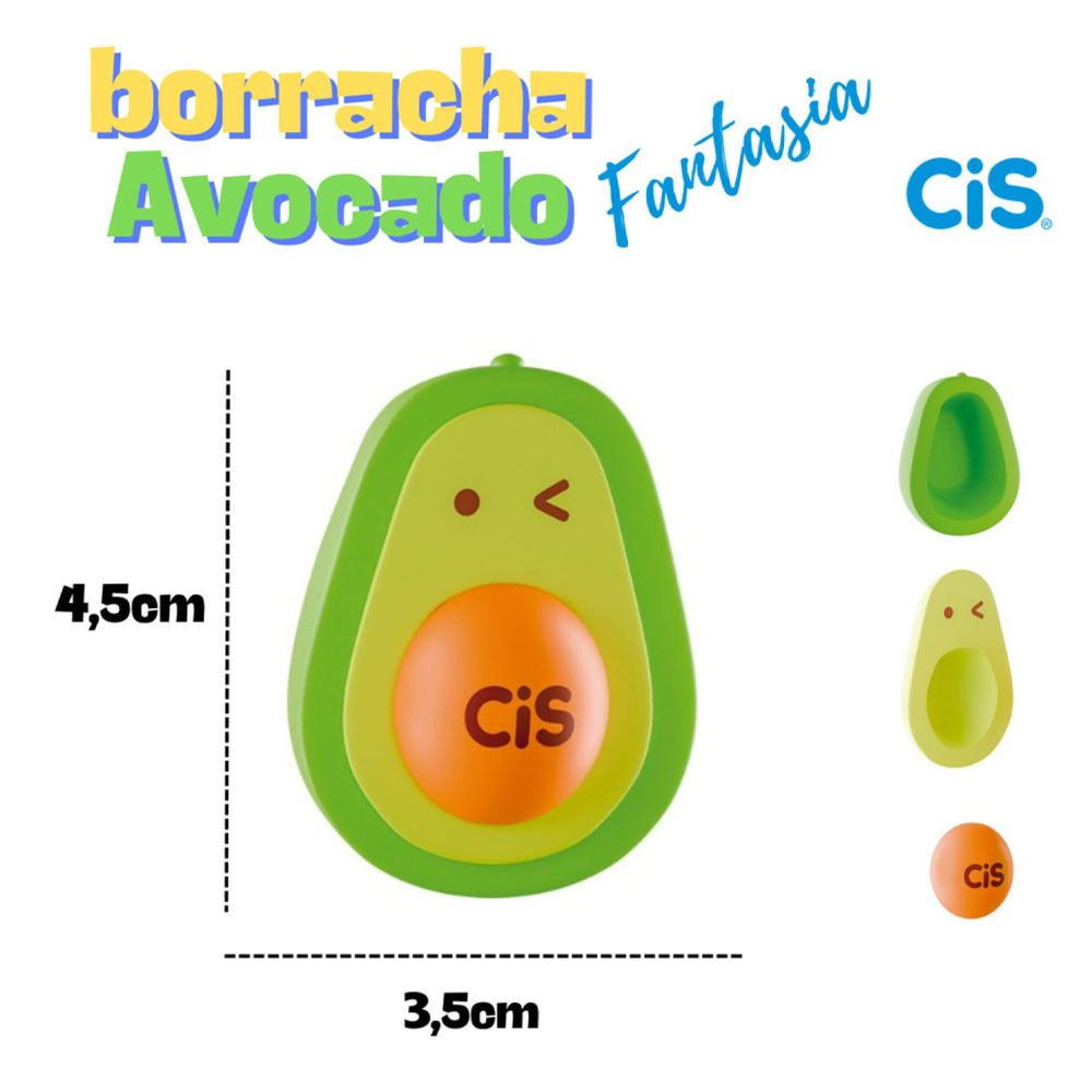 A Borracha Fantasia Abacate CIS é o toque perfeito de diversão e criatividade para o seu material escolar! Com um design encantador inspirado em um avocado, essa borracha desmontável permite separar o caroço e a massa, tornando o momento de apagar muito mais interativo. Além de apagar com eficiência, é um item decorativo que deixa qualquer estojo ou mesa de estudos mais alegre e estiloso. Ideal para estudantes, crianças e apaixonados por papelaria que buscam um produto funcional e cheio de personalidade.