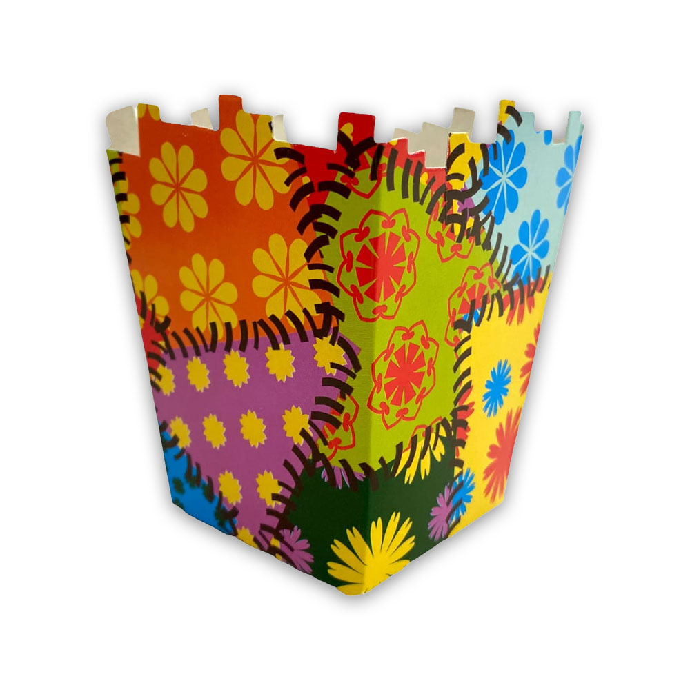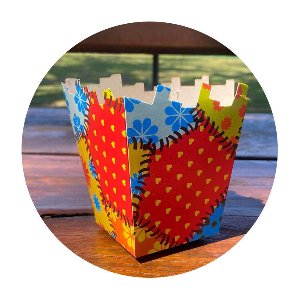 Cachepot Junino Retalho com 6 Unidades Colorido Festa Junina é ideal para arranjos de mesa para decoração de festa junina, caixinha para pipocas e doces!