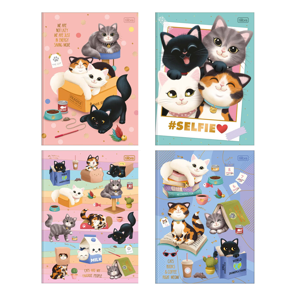 O Caderno Brochura Capa Dura Universitário Purrfect Cats 80 Folhas da Tilibra é perfeito para você que busca uma opção para organização da rotina de estudos com visual de gatinhos brincalhões e cheios de personalidade.