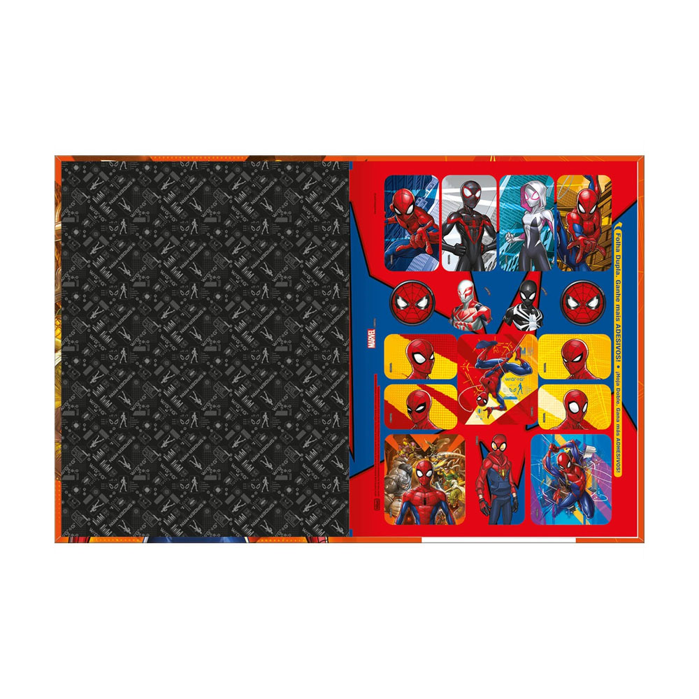 O Caderno Brochura Capa Dura Universitário Spider Man 80 Folhas possui capa dura com a parte interna decorada, folha de adesivos e folhas pautadas. Com a lombada quadrada e acabamento diferenciado que garante maior resistência ao produto, é ideal para o dia a dia na escola.