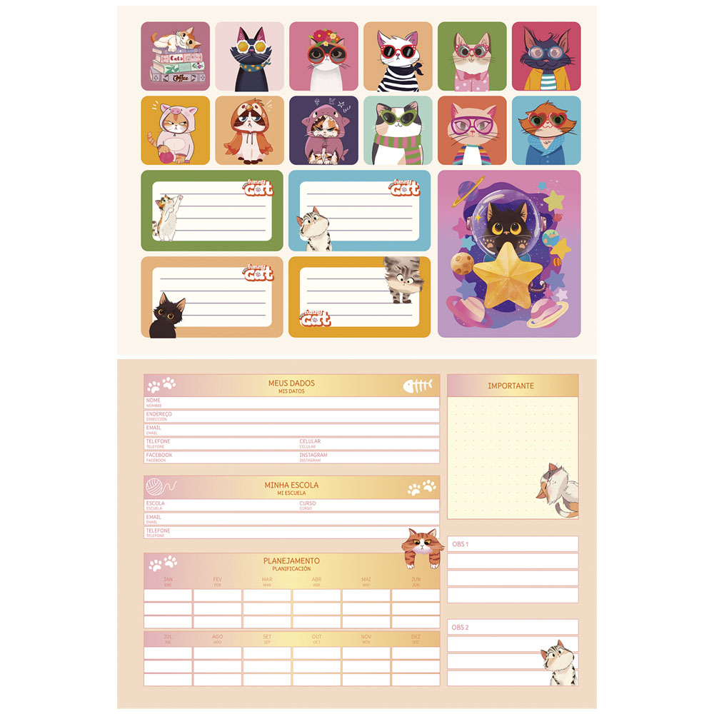 Charmosa e cheia de personalidade, a linha Funny Cat combina o humor e a fofura dos gatinhos com elementos do dia a dia, como livros, café e muito estilo. Ilustrações expressivas, traços delicados e uma paleta suave criam o mix ideal para quem ama felinos e quer mais leveza na rotina.