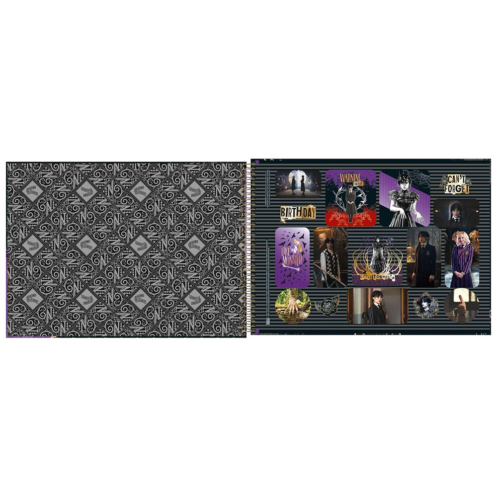 O caderno de desenho Tilibra tem capa dura com visual marcante, sombrio e misterioso da série Wandinha, espiral, folha de adesivos e 80 folhas brancas para liberar a imaginação. Adquira já o seu!