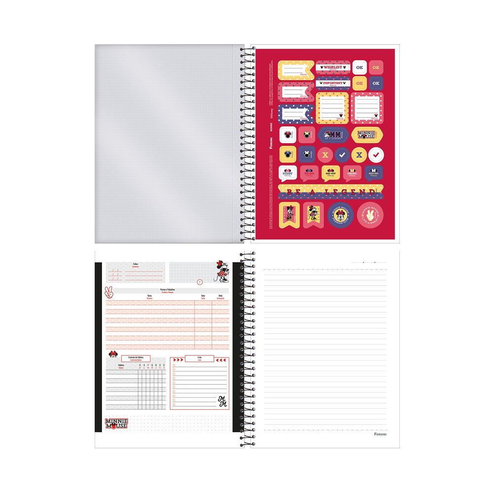 Com quase um século de história, Minnie Mouse continua encantando gerações. O Caderno College Capa Dura Minnie Mouse conta com paleta de cores e elementos mais atuais, trazendo a essência, carisma e delicadeza da personagem em suas capas diversas.