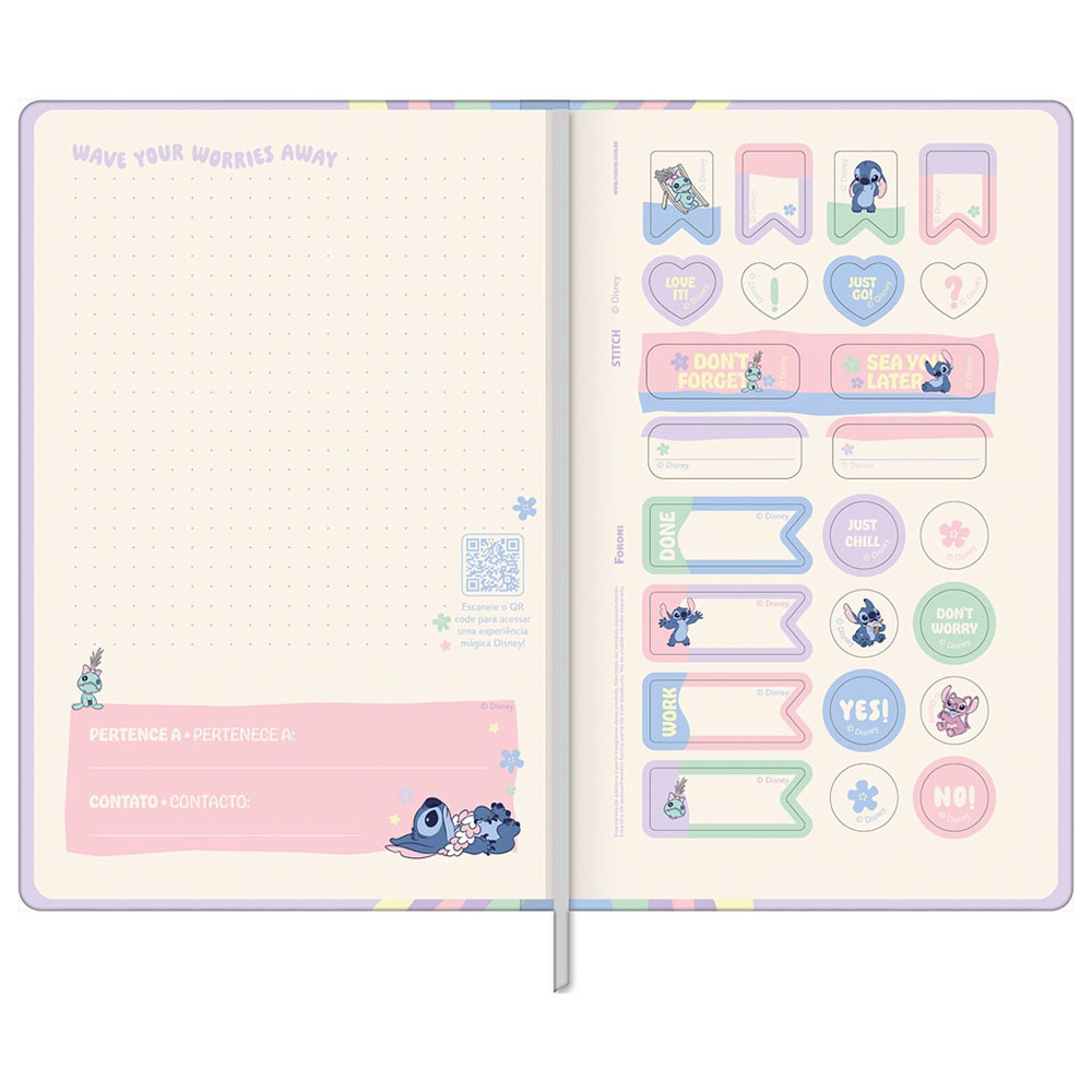 O Stitch (também conhecido como Experimento 626) é um dos personagens mais queridos e divertidos do universo da Disney. A Caderno Capa Dura Costurado Sem Pauta Stitch busca retratar o personagem através de elementos, cores e frases que trazem em capas a essência do personagem