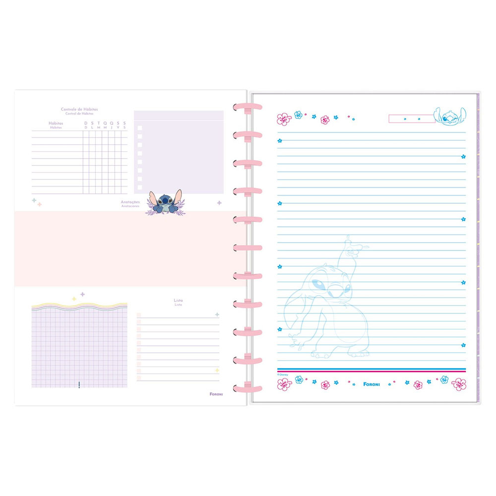 O Stitch (também conhecido como Experimento 626) é um dos personagens mais queridos e divertidos do universo da Disney. O Caderno Discbook busca retratar o personagem no mundo das redes sociais, com elementos e cores características em sua composição.