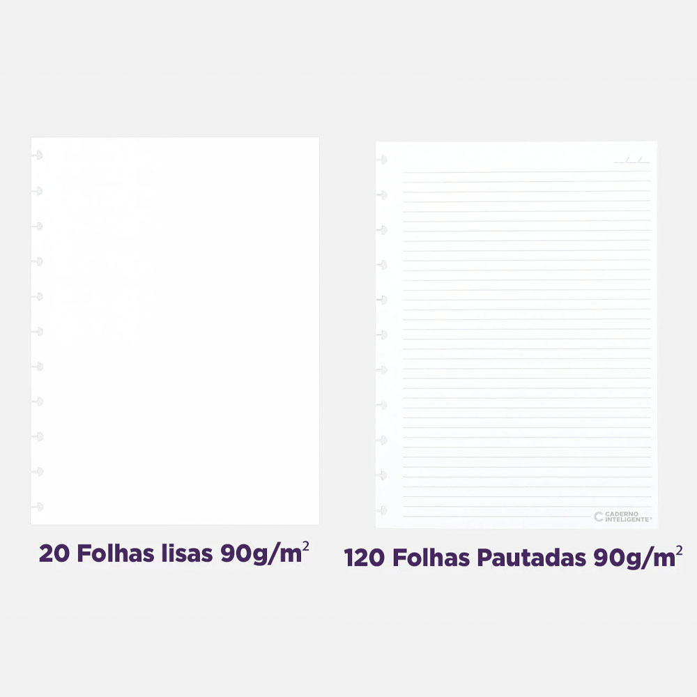 Estrutura: Capa e contracapa rígidas com sistema de 11 Discos G (suporta até 150 folhas).