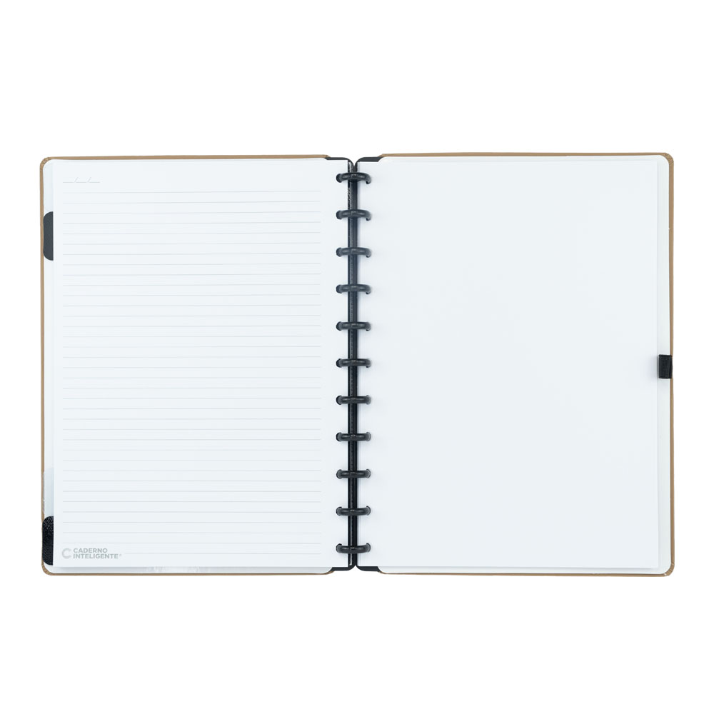 O Grande é um cadernão maravilhoso para aquelas pessoas que precisam de muito, muito espaço para anotar (alô, universitários!). Ele tem aproximadamente o formato de uma folha de sulfite e fica ainda melhor quando você junta as soluções feitas para ele. É um caderno pra vida!! Grande: Capa e contracapa rígidas, 01 bolsa plástica, 01 folha de instrução de uso e manuseio, com refis e acessórios da marca disponíveis no verso, 01 folha de identificação com calendário no verso, 04 divisórias com abas para identificação (02 pretas e 02 transparentes), 80 folhas offset 90g (60 folhas pautadas e 20 folhas lisas brancas para impressão), 01 suporte com elástico para 01 caneta ou 01 lápis e discos M + elástico. Medidas: 215x280mm