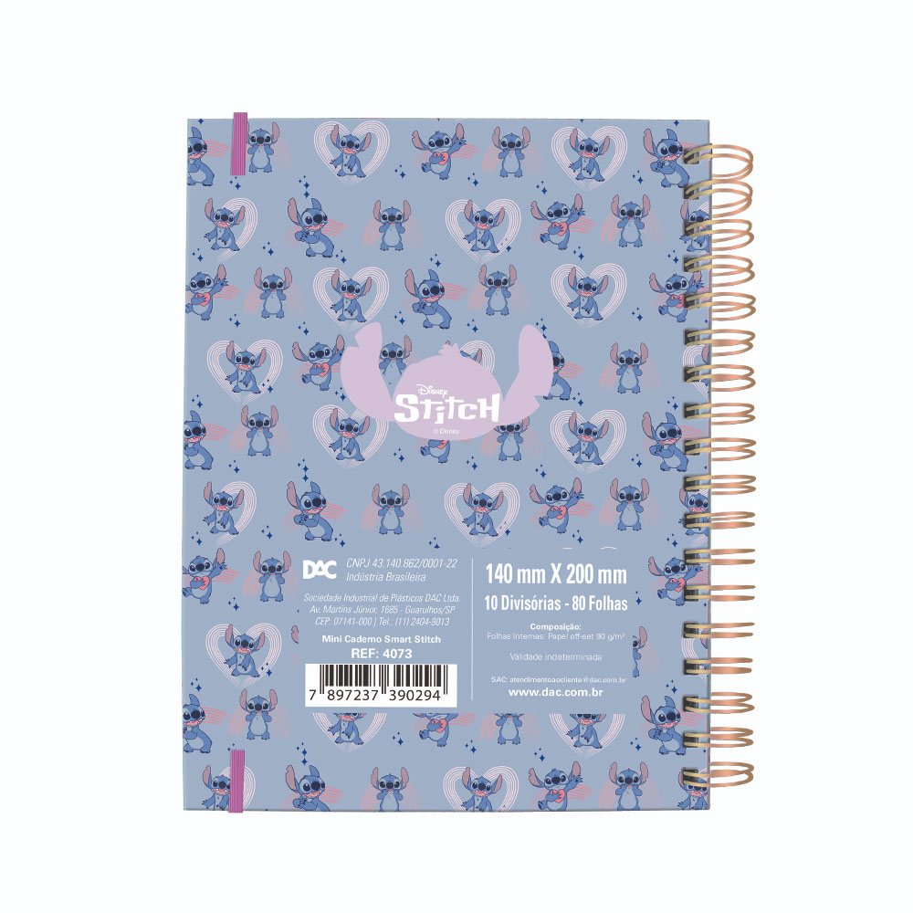 O caderno Smart em Wire-o do nosso amado e pequeno Stitch, é lindo, sofisticado e muito resistente, pois é de metal grosso e totalmente fixo com a capa, sem ficar balançando ou com o risco de cair e desmontar. Smart porque é versátil, é possível remover, acrescentar e reordenar as folhas sem qualquer dano a elas ou à estrutura do caderno. Tipo um fichário, mas muito mais fácil. O caderno conta com 80 folhas destacáveis e com a gramatura 90gr. a tinta da canetinha não vaza na folha seguinte na hora de colorir, além das divisórias.