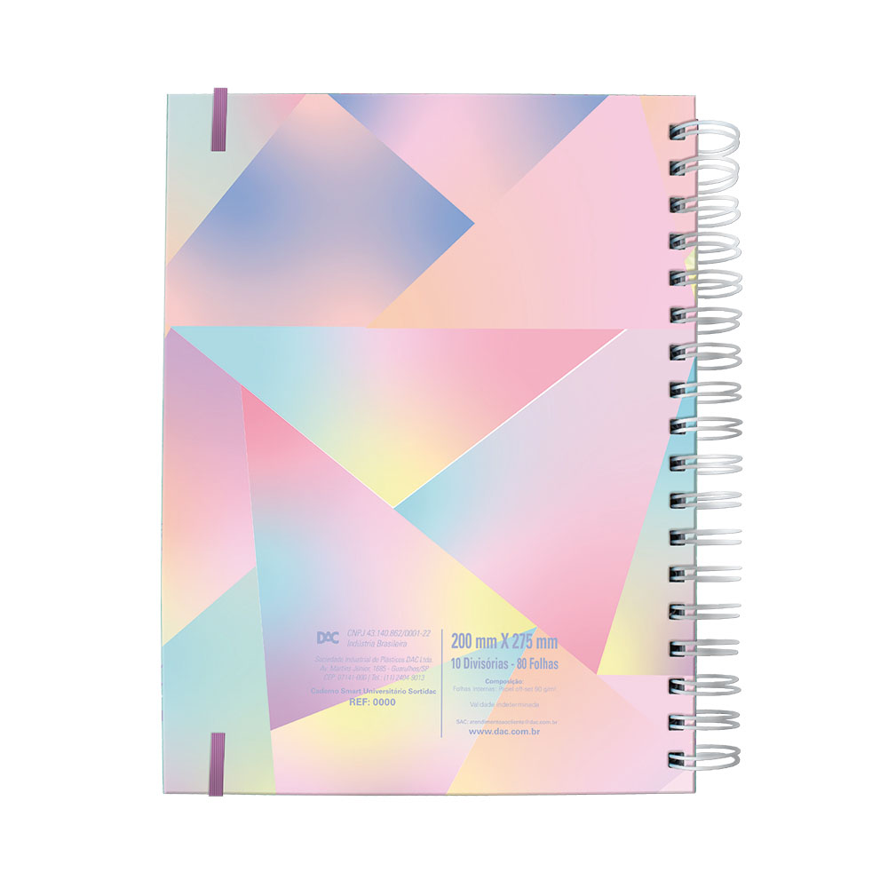 Detalhe: Com fechamento em elástico / 80 folhas com gramatura 90gr e 10 divisórias em papel, todas removíveis com a possibilidade de remanejar para onde quiser.
