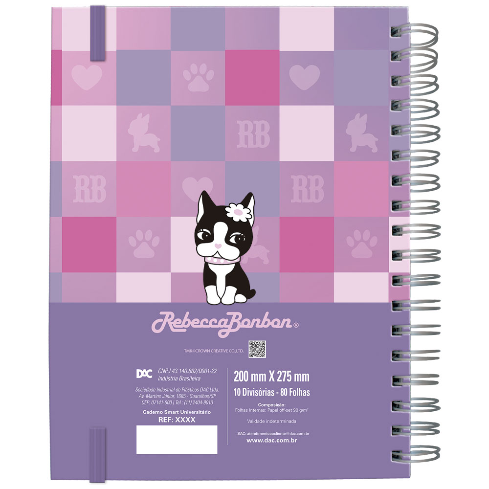 Caderno Smart super resistente com espiral de metal grosso fixo à capa para maior durabilidade. Conta com elástico que mantém as folhas firmes, evitando que balancem ou se soltem.