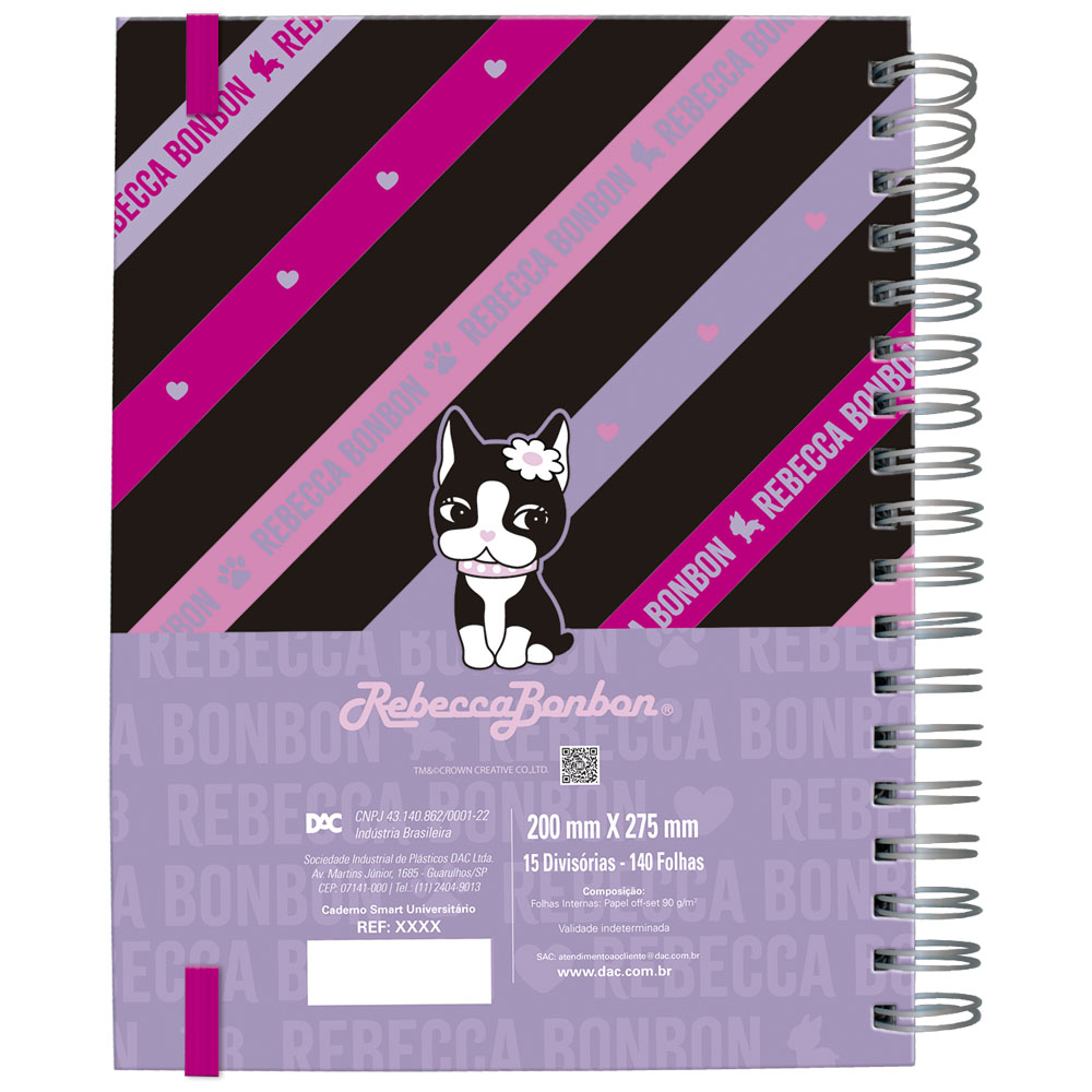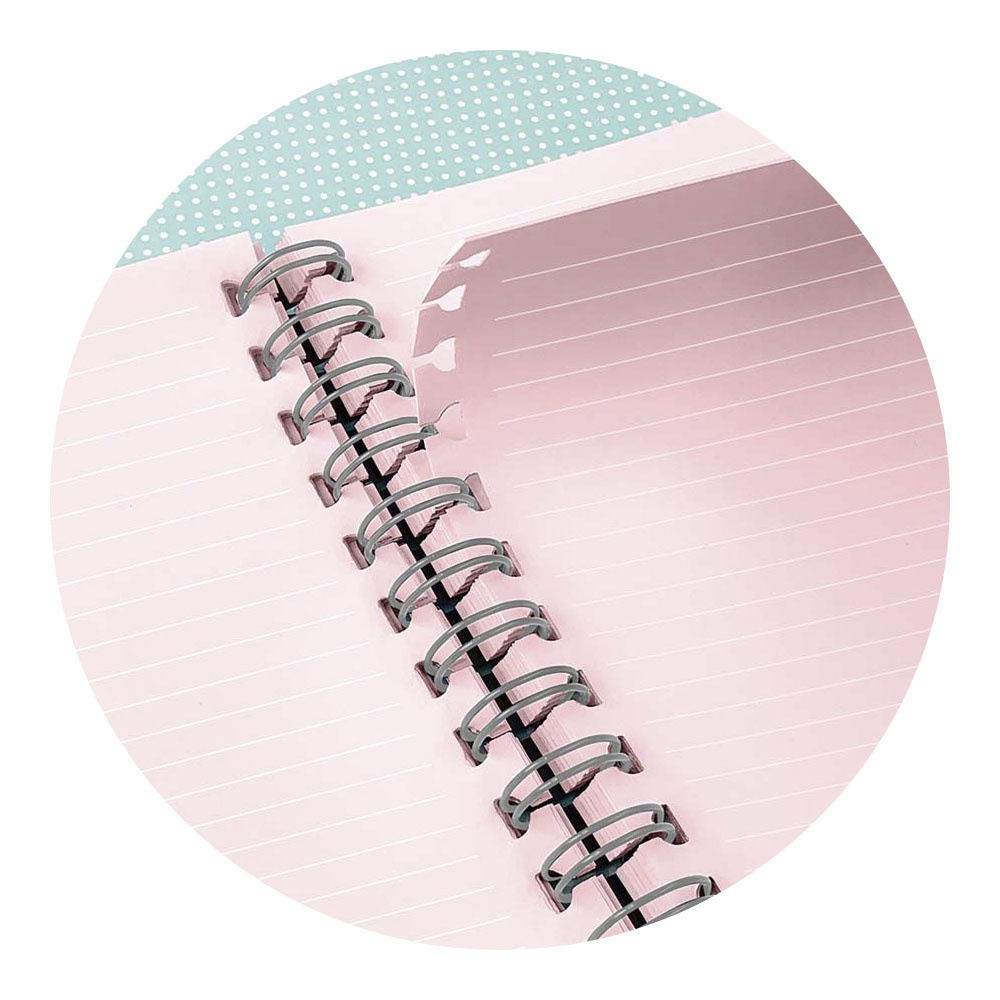 Caderno Smart super resistente com espiral de metal grosso fixo à capa para maior durabilidade. Conta com elástico que mantém as folhas firmes, evitando que balancem ou se soltem.