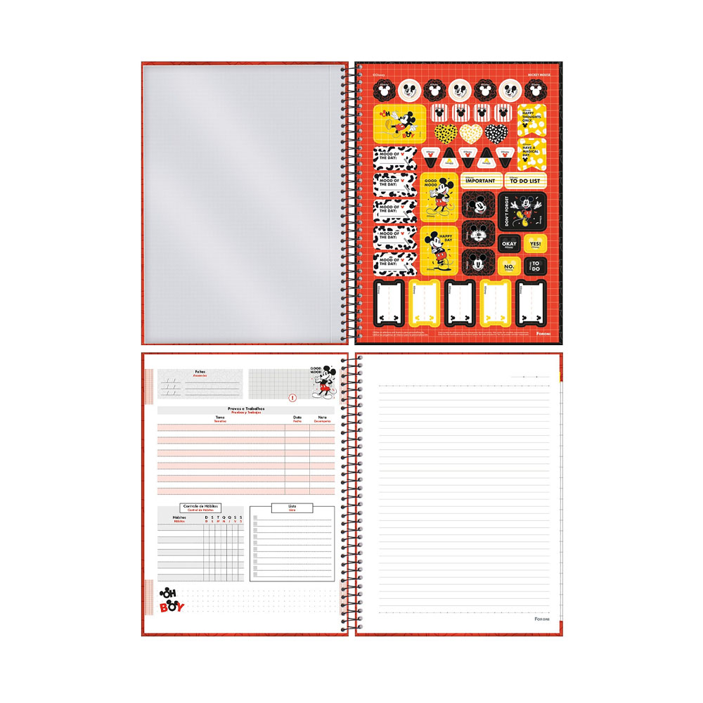 O Mickey é, sem dúvidas, o personagem mais famoso e amado do mundo entre todos os tipos de públicos. O Caderno Universitário Capa Dura Mickey Mouse traz em sua composição as cores características do personagem e muito amor estampado em suas capas.