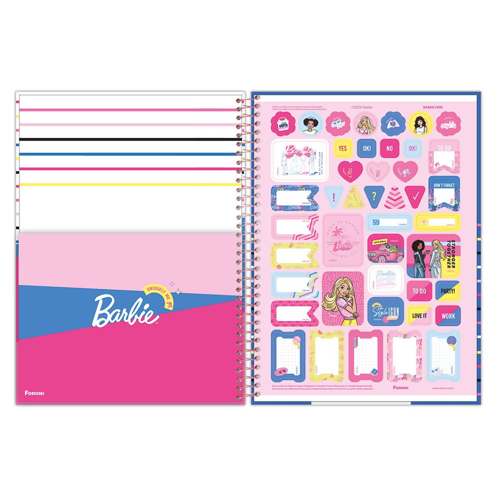 O Caderno Universitário Capa Dura Barbie expressa a tendência fashion, lifestyle e muita diversão. Busca retratar cores alegres e a própria personagem em todas as suas capas.