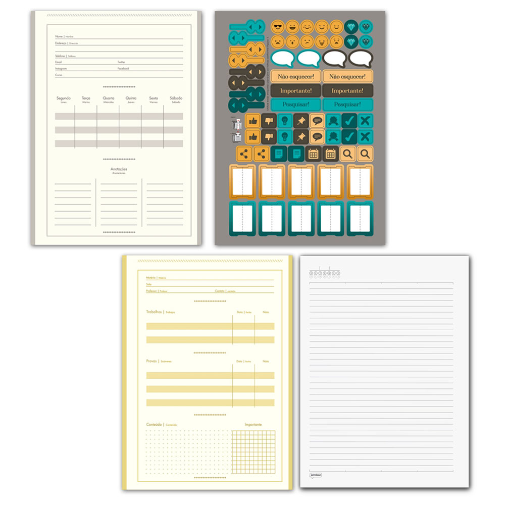 O Caderno Universitário possui capa dura, folhas pautadas e espiral.