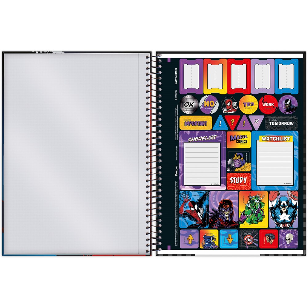 O Caderno Universitário Capa Dura Marvel Comics busca representar os heróis mais queridos dos quadrinhos através de suas capas diversas.