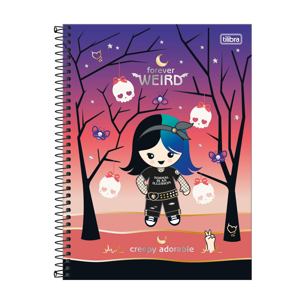 O Caderno Espiral Capa Dura Universitário 1 Matéria Plush Poison 80 Folhas possui capa dura com detalhe metalizado, parte interna decorada, bolsa de papel decorada para guardar trabalhos e anotações, folha com adesivos funcionais, folhas pautadas decoradas e espiral colorido. Ideal para o dia a dia na escola ou na faculdade..